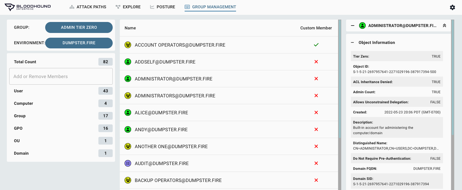 - Group Management tab - Completely new to CE and an additional view of Tier Zero resources for BHE, the Group Management view will let you review and modify current asset group members for Tier Zero / High Value as well as for Owned group in CE. We have additional enhancements coming to this view soon to filter and search the list!